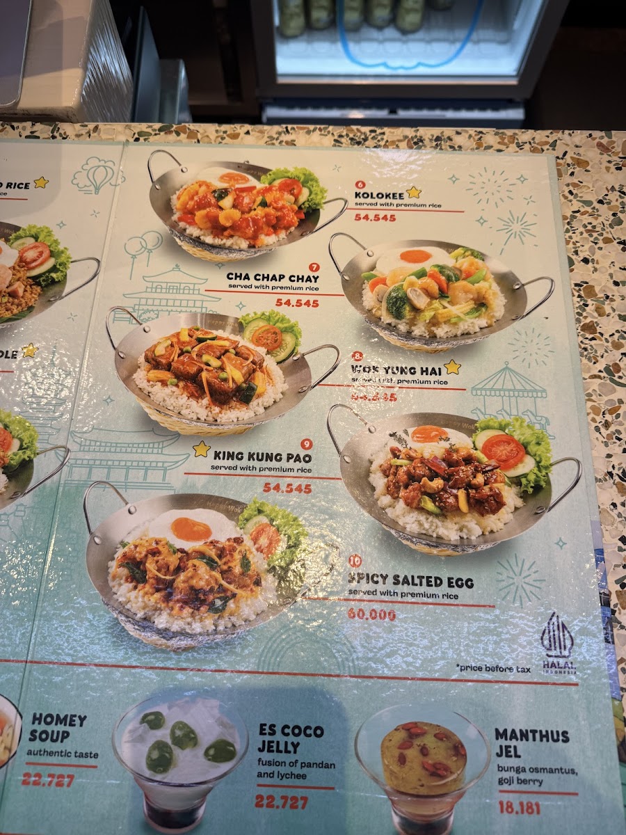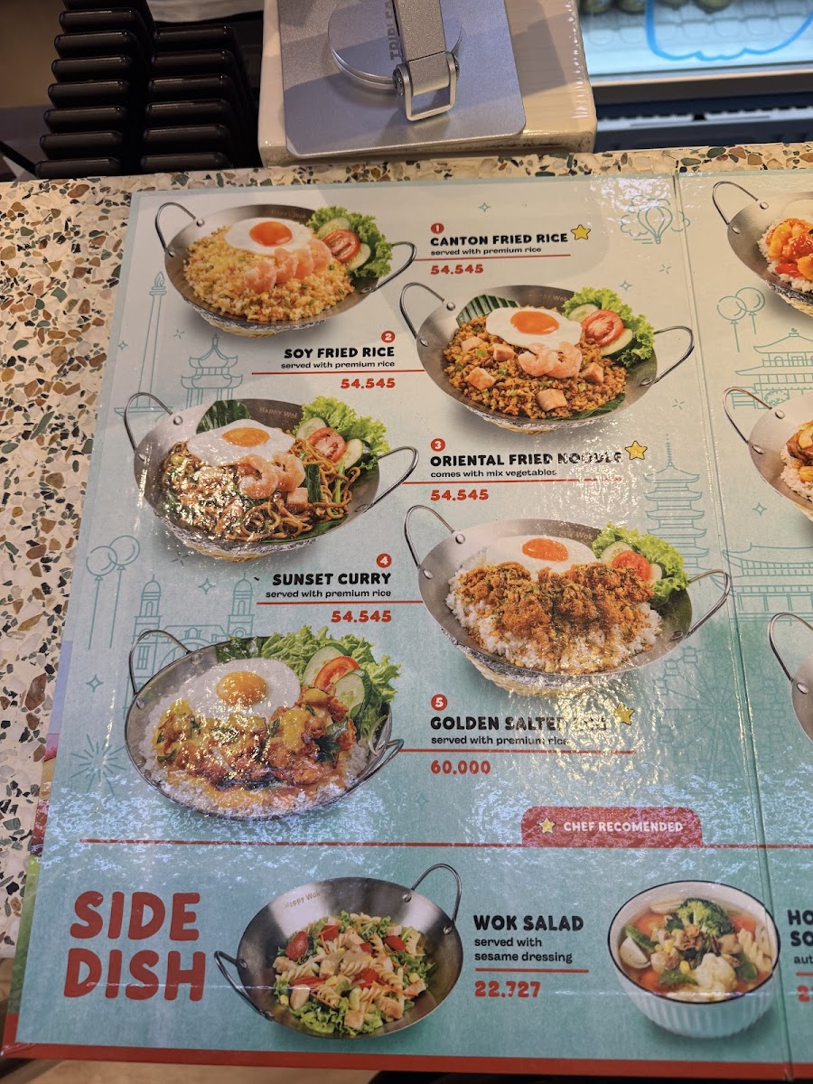 Happy Wok Emporium, located in Emporium Pluit Mall, offers a vibrant menu that truly captures the essence of Asian comfort food with a modern twist. The standout dishes like their juicy salted egg chicken bring a perfect balance of savory and slightly sweet flavors, delighting the palate, though the rice sometimes feels overcooked. The curry dishes are rich and aromatic, offering a satisfying, creamy experience that keeps customers coming back. Their generous portions, particularly in nasi capcay with fresh vegetables and baby shrimp, showcase value despite some mixed opinions on pricing. Beyond the food, the warm, attentive service—especially from the friendly cashier, Anissa—adds a welcoming touch to the dining experience. While some find the salted egg dishes less distinctive compared to Singapore’s, the overall menu remains engaging and enjoyable for those craving hearty, flavorful meals in a lively mall setting.
